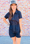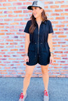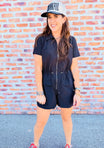 Solid Cinch Waist Romper