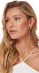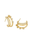 Radiance meets dimension with the Hallie Earring. Meticulously crafted, these earrings blend structure and sparkle to give them a glamorous appeal. These hoops feature three curved gold-tone bands. One band gleams with a row of sparkling CZ stones, while another is adorned with a playful tier of dangling CZ charms that brings shimmer to the simple gold band in the middle.