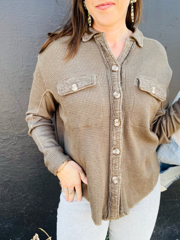 Rock that effortless cool-girl vibe with the Octavia Acid Wash Top. This french terry stunner flaunts a moody black acid wash finish and eye-catchi...