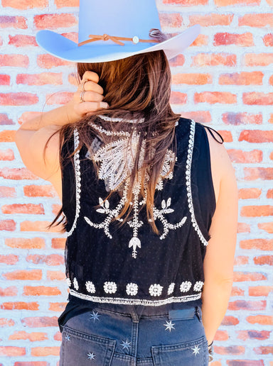 Dreamy and delicate, this tulle vest is your new go-to layering essential. Semi-sheer fabric showcases gorgeous embroidered accents, while the adju...