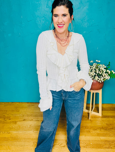 Light, flirty, and totally feminine! The Marley Top is crafted from delicate pointelle knit with gentle ruffle details and a charming V-neck that a...