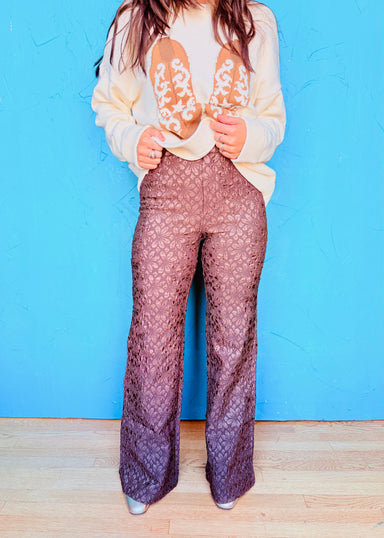 More Options AvailableVibrant and fun, these standout floral pants feature a lively jacquard design paired with a flattering high-rise and wide-leg shape. They offer a h...