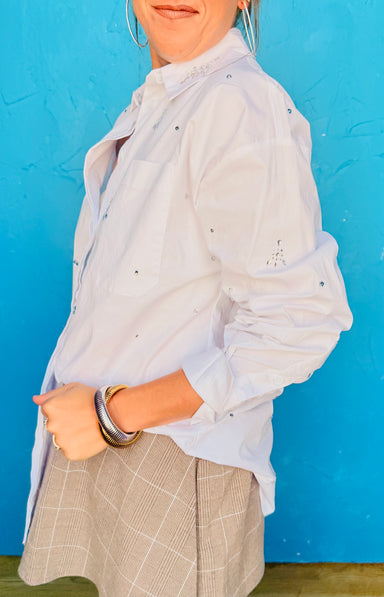 Featuring a shirt collar, button-down front, and a relaxed boxy fit, this woven cotton blouse combines cozy comfort with timeless style. Sparkling ...