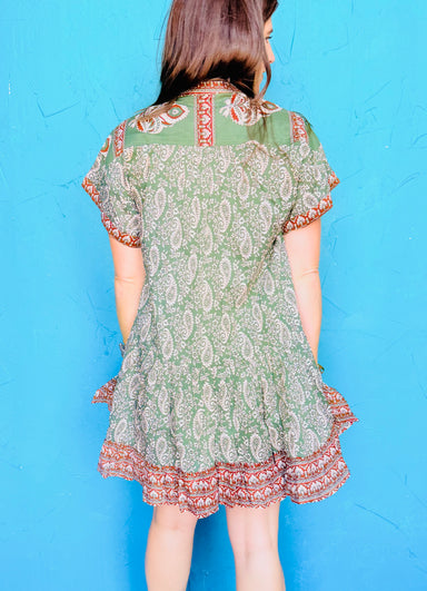 The Dova Dress, part of the Mahila x Tolani collection, mixes bold style with top-notch craftsmanship. Featuring a vibrant green and brown pattern,...