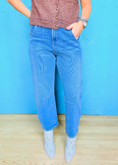 The Lasso Flare Leg Jean strikes the perfect balance between chill and chic. Featuring a high-rise waist and a flattering barrel shape, this medium...
