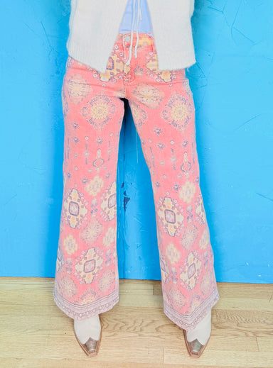 Fall for the Micah wide-leg jean, showcasing vibrant Tibetan Tapestry prints. With a stylish mid-rise fit and fun cut-off hem, these jeans mix comf...