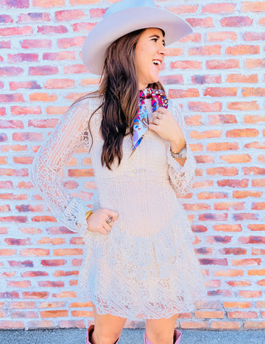 This dress features airy layered ruffles that dance with every step, complemented by delicate semi-sheer sleeves and detailed lace accents. Design...