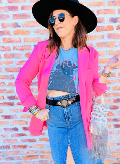 Add a splash of fun to your closet with the Karlie Solid Pink Blazer! Its sleek, tailored cut flatters your shape, while the bright pink hue boosts...