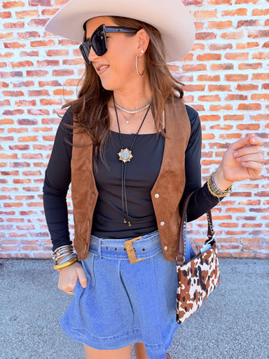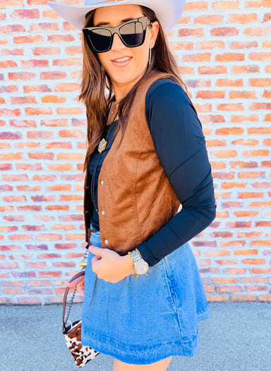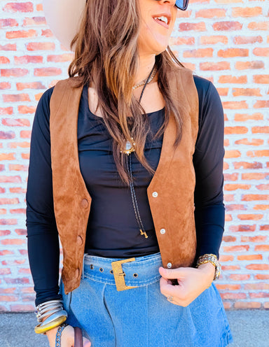 More Options AvailableThis suede vest with snap closures brings classic cool to your closet. Crafted for comfort and style, it effortlessly elevates your look, whether y...