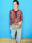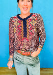 This Leopard Mixed Media Henley showcases an allover leopard print paired with charming floral embroidery across the upper part. With a Henley button-up neckline and a clean straight hem, it’s a playful yet stylish upgrade for your everyday wardrobe.