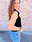 Slip into pure velvet bliss with the North Velvet Top—where comfort meets glamour in the most delightful way. The ruffle-trimmed sleeves elevates any outfit, classic fitting is perfect for those who crave versatility and elegance in their wardrobe. This top is perfect for all your holiday gatherings!