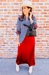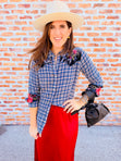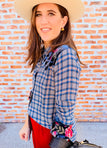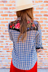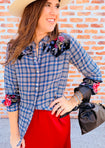 This charming western-inspired top blends classic cowgirl vibes with contemporary flair. The airy plaid fabric drapes beautifully through voluminous Bishop sleeves, while pearlized snaps add authentic western charm. Delicate floral embroidery in bold hues adorns the yoke, giving it personality and pizzazz. Style it with your favorite bootcut jeans and trusty western boots for an effortlessly cool look that turns heads.