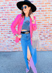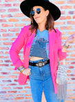 Add a splash of fun to your closet with the Karlie Solid Pink Blazer! Its sleek, tailored cut flatters your shape, while the bright pink hue boosts your confidence and style. Ideal for rocking at the office or dressing up your weekend vibes with a touch of flair!