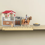This Bigtime Barnyard horse and rider playset by M&F Western Products will offer hours of fun. Includes pretend horse grooming accessories.