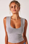 This buttery soft tank is the epitome of sleek with its seamless design, stretchy feel, and wide shoulder straps. Featuring a scoop-neckline and sleeveless silhouette, it's both formfitting and hip-length.