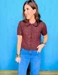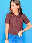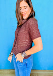 This charming cardigan features delicate openwork details that make it feel like a hidden vintage gem. It’s finished with a front button closure and a relaxed spread collar for effortless style.