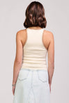 The chic elegance in the Mariah crew neck tank, featuring delicate crochet detail and a flattering silhouette crafted from a blend of 50% viscose, 38% polyester and 12% nylon for soft comfort. This versatile piece offers elevated style embodying the essence of simple, graceful, fashion.