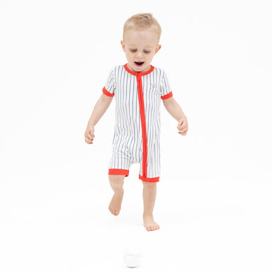 Hit a home run on comfort with our Shortie 2-Way Zipper Romper, featuring playful baseball and bats embroidery. Crafted from ultra-soft Viscose fro...