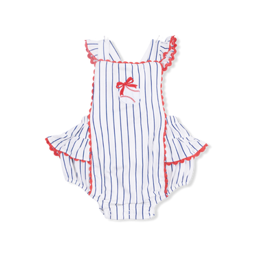 Ready for sunny adventures, our Ric Rac Ruffle Sunsuit features a charming baseball applique finished with a sweet bow for a playful, sporty twist....