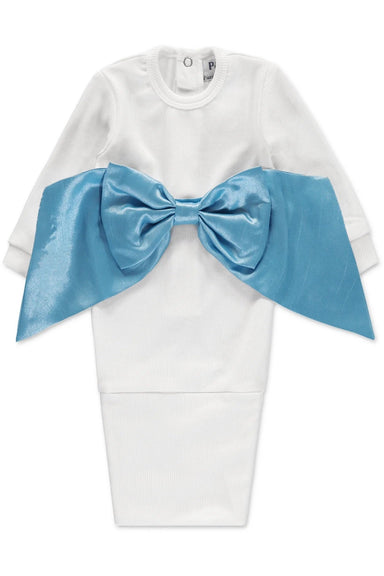 This adorable gown makes diaper changes a breeze while keeping your little one cozy and snug. The knotted design means no fussing with snaps or zip...