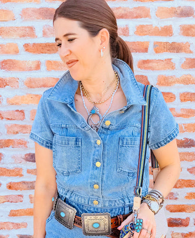 Saddle up in style with this charming denim chambray shirt, complete with sparkling rhinestone accents that add just the right amount of glam to yo...