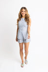 These summer shorts are a must-have! They come with a button and zip fly, belt loops, and a fun striped design. Made from breezy linen, they have a cute cuffed hem. Match them with the coordinating top and your favorite white sandals for an easy, stylish look.