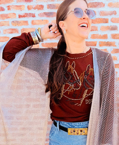 Rock that equestrian energy with the Cippety Clop Tee—a laid-back long-sleeve featuring intricate beadwork and trendy raw-edge hems that elevate it...