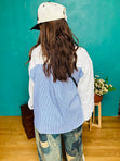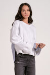 Elevate your wardrobe with this Long Sleeve Mixed Media Top, designed to blend classic elegance with modern texture. Featuring a refined combination of fabrics, it offers both comfort and visual interest, making it perfect for sophisticated day-to-night looks. The tailored fit and thoughtful detailing ensure a polished appearance, ideal for professional settings or stylish casual outings.
