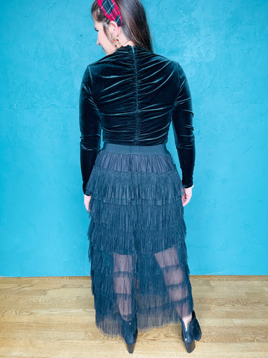 Dark-as-night Mistletoe Ruching: ultra-soft, long-sleeved, back-zippered, and form-fitting top (for when you mean business... or just want to look ...