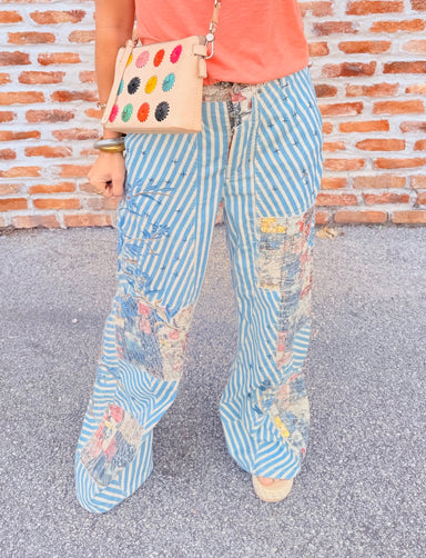 These wide-leg wonders blend retro Western vibes with contemporary flair, featuring a stunning embroidered patchwork that tells a story of country ...