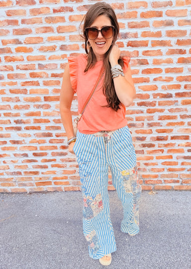 Step into effortless style with the Fiona Wide Leg Jean in Avalon print. This high-rise stunner rocks a trendy cut-off hem that gives classic denim...