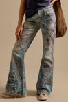 Another tried-and-true pair gets the so-special Illusions touch. These relaxed flare jeans from We The Free are treated with our signature screen-printed technique for the perfect painted look, finished with real floral cutwork details for a bold finishing touch.