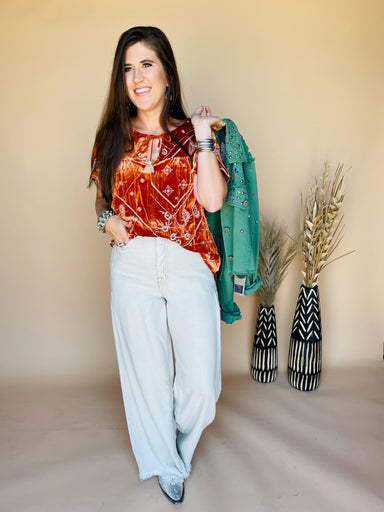 This charming western-inspired top blends classic cowgirl vibes with contemporary flair. The airy plaid fabric drapes beautifully through voluminou...