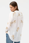 Crafted from a lightweight, breathable fabric, the Cheval Oversized Shirt is adorned with intricately embroidered equestrian motifs throughout. Designed with a classic collared button-front and long sleeves, this relaxed silhouette is finished with subtle embroidery along the placket and a softly curved hemline for an elevated touch. Pair with tailored trousers or slim denim and flats for an effortless day-to-evening look.