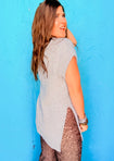 This sleeveless long-line tunic is a layering superstar! Made from soft sweater knit, it delivers cozy warmth with a fun twist thanks to its flattering V-neck and subtle sequin sparkle. Layer it over a crisp white shirt for a polished office look or throw it on with a simple tee for laid-back cool.