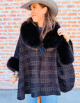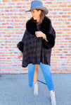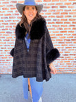 Plaid Faux Fur Cape