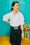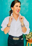 Add a fun twist to your closet with the KARLIE Solid Poplin Ric Rac Trim Top in bright white. Made from silky smooth poplin, it delivers a fresh, sharp look for any event. The cute ric rac trim gives it a sweet, eye-catching flair. Light and airy, this top keeps you comfy from morning to night while boosting your outfit with classic charm. Perfect to mix and match with jeans or skirts, it’s your go-to piece for easy, playful style every day.