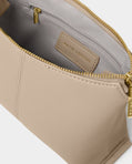 Introducing the Laila Crossbody Bag in Light Taupe, where modern design meets classic elegance. This bag features an adjustable canvas strap with a tapered design, ensuring a custom fit that makes it the ideal companion for both day and night. The double zip top closure reveals a spacious interior, enhanced by an internal zip pocket for effortless organisation of your essentials.
