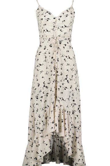 Adorned with stunning floral prints against a dark background, the Karolina Tea Length Dress is sure to make a statement. Made from a luxurious sil...