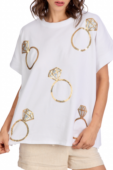 Take your style game to the next level with this dazzling sequin and tinsel adorned top in a soft cotton blend. Perfect for adding a sprinkle of gl...