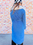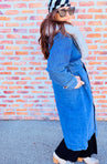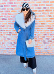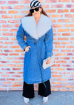 Keep cozy and stylish in this playful Denim Trench Coat featuring a fluffy fur collar!