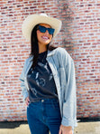 Say hello to your new fave denim, the SF Jeans! These super cute jeans are made from stretchy denim, giving you the perfect fit. They feature a high waist, hug your thighs just right, and flare out to a wide cuffed hem for that chic retro vibe. Pair them with a fitted bodysuit and booties, and you're ready to rock any look in style!