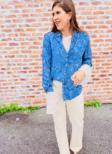 Drape yourself in pure elegance with this enchanting lace blouse. Featuring an all-over delicate lace design, a chic mock-neck silhouette, and char...