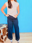 Add some sparkle to your closet with this chic high neck top, sprinkled with shimmer across the front. It’s your go-to piece for pairing with jeans and heels or layering beneath a bold, eye-catching jacket!