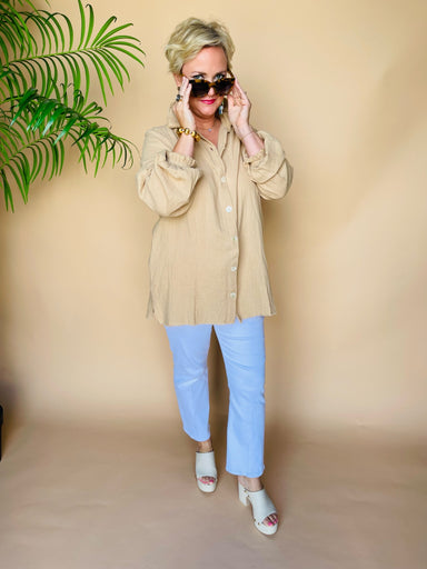 The Jake Wide Leg Pant combines style and comfort with its stretchy denim, ideal for chill days or dress-up moments. Its roomy wide leg shape gives...