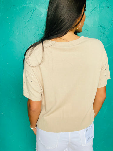 Crafted from 100% rich cotton, the Femke Beaded Kimono Sleeve Tee breathes new life into a classic wardrobe staple. Designed with a V-neckline and ...