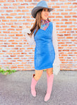 Laid back vibes meet vintage charm in this sleeveless denim mini dress. The light wash gives it that perfectly worn-in feel, while the cinched keyhole back adds just the right amount of flirtation. Throw it on with sneakers for casual days or dress it up with heels for nights out. A versatile wardrobe essential that works for you year-round.