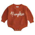 This long-sleeve knit bubble sweater features charming chainstitch embroidery and a coconut wood button closure at the inner leg for a cute, cozy fit.