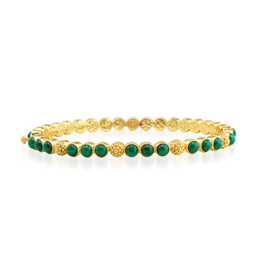This charming hinged bangle pairs striking green malachite stones with delicate golden berry accents for a look that's equal parts sophisticated an...