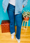 Say hello to your new fave denim, the SF Jeans! These super cute jeans are made from stretchy denim, giving you the perfect fit. They feature a high waist, hug your thighs just right, and flare out to a wide cuffed hem for that chic retro vibe. Pair them with a fitted bodysuit and booties, and you're ready to rock any look in style!